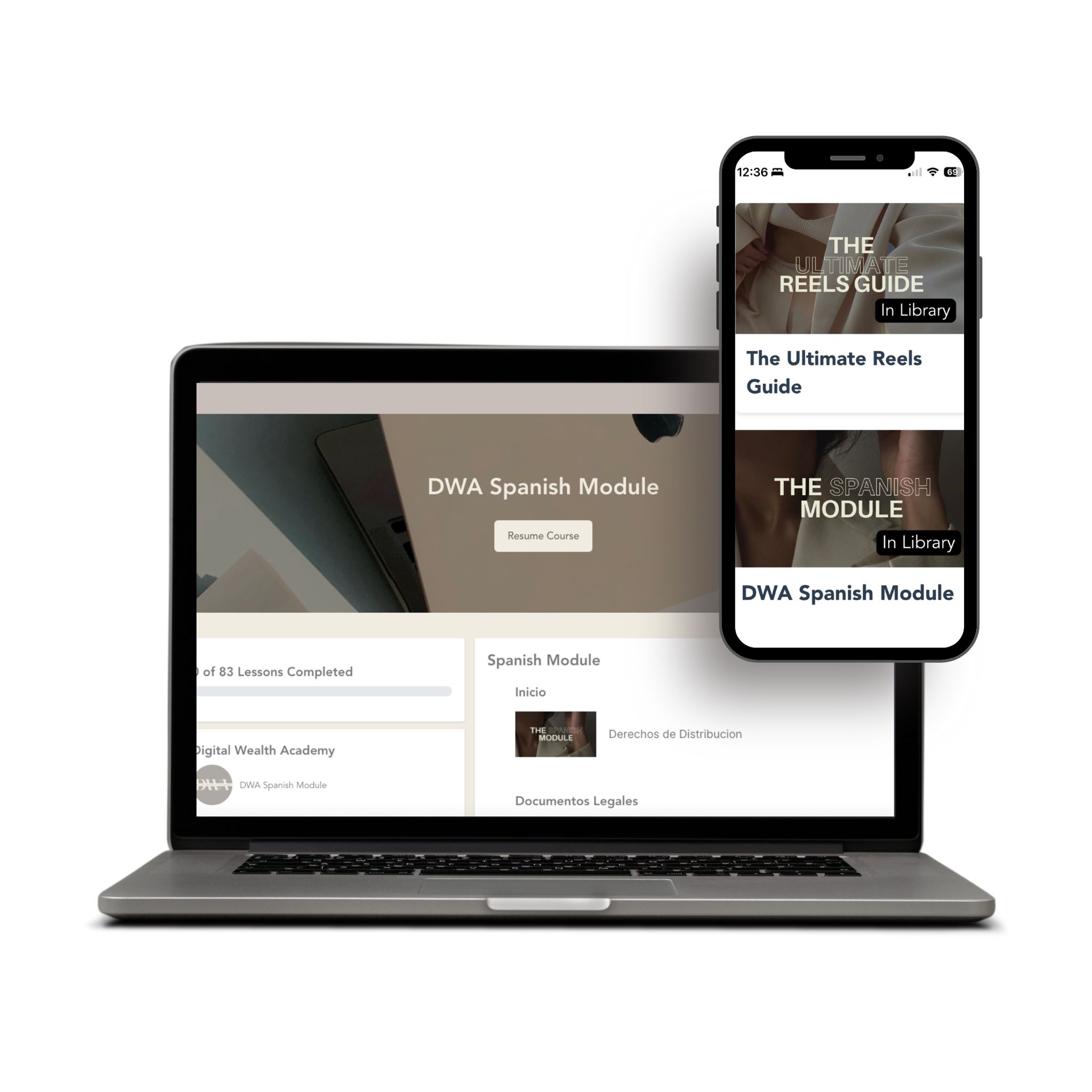 • Más de 100 modulos que te enseña de la A a la Z todo sobre marketing digital y productos digitales