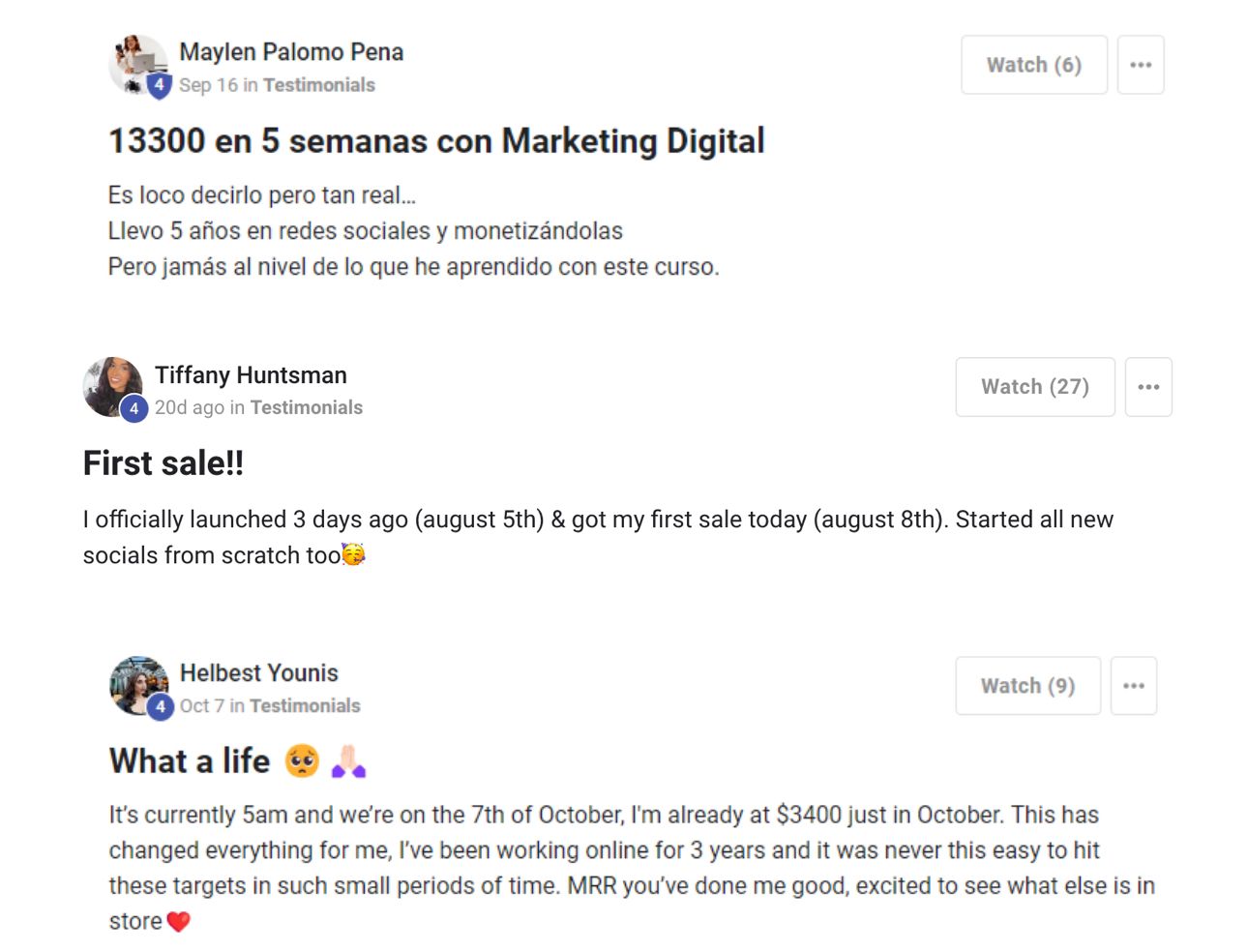 Te entiendo. Yo también tuve dudas y muchas preguntas antes de comprar el curso . Pero no hay nada mas satisfactorio que vencer los miedos. y más aún con una oportunidad como esta. Sin embargo, te ahorro tiempo y trabajo al haber agrupado varios testimonios de otros estudiantes con sus experiencias. Estos testimonios son de los último tres meses.