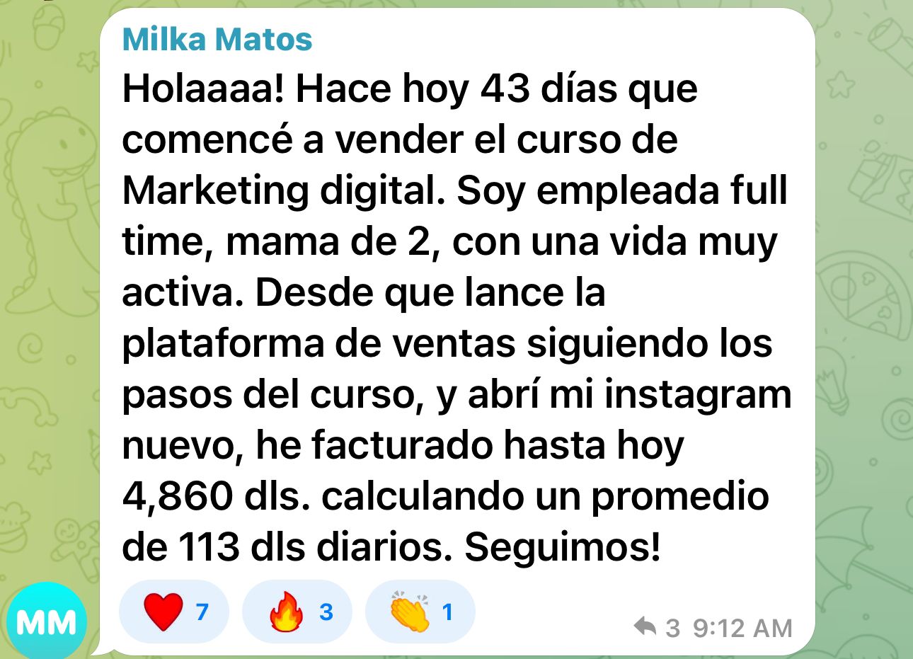 Fue ahí cuando Empecé a pensar cómo iba a generar ese sueldo que ya no iba a recibir más, porque me negaba a empezar la nueva vida siendo mamá ausente. Así que por redes sociales veía a muchas mujeres generando ingresos de más de $30,000 dólares en sus primeros 90 días y siendo mamás presentes, así que me puse en la investigación y sí, era eso que seguramente tú también has escuchado, el famoso curso de Marketing Digital y MRR, y ¿qué crees? Lo compré, y empecé a estudiarlo, me parecía brutal cada módulo, cada entrenamiento. Quería saber más y más y decía ¿por qué no empecé antes para aplicarlo en mis otros negocios? Pero lo más brutal de este curso es cuando lo que aprendes te da esa libertad financiera.